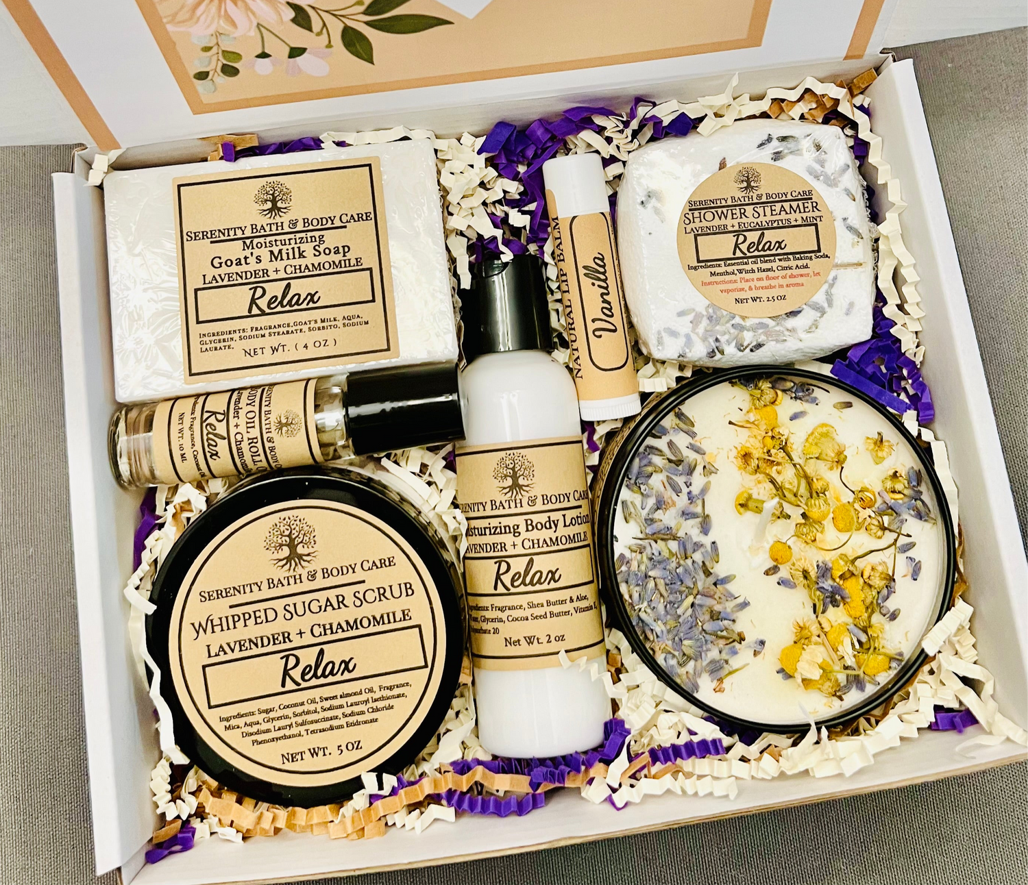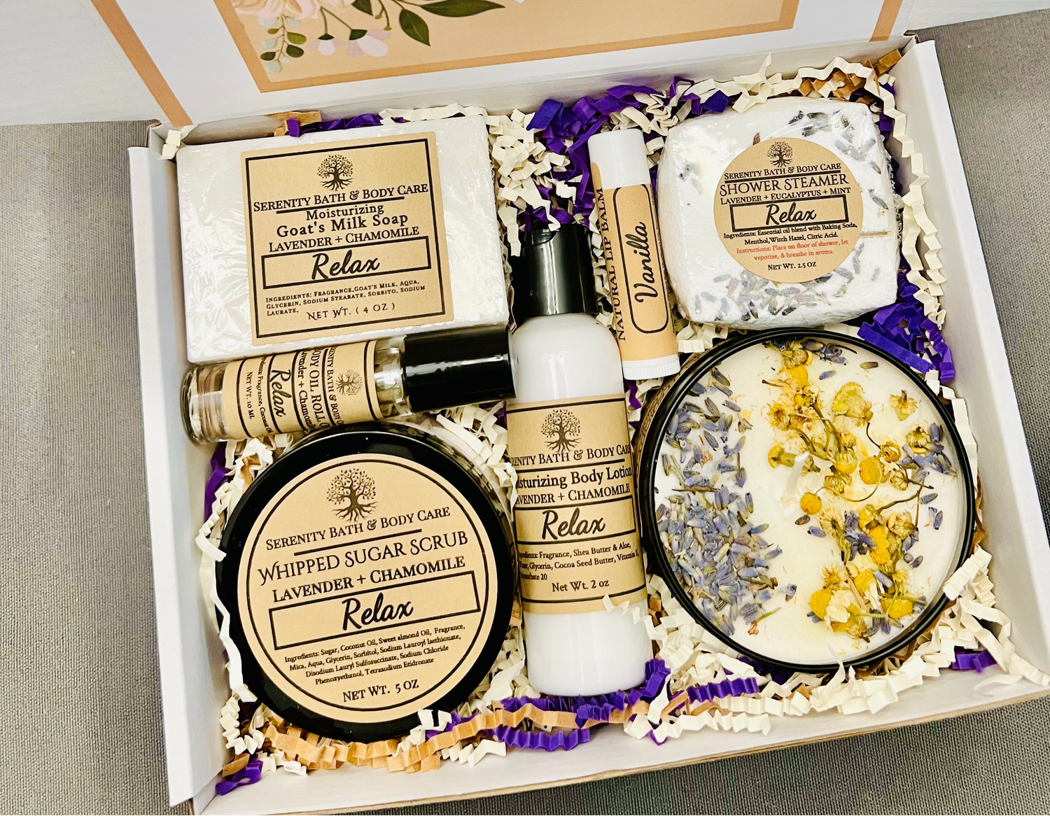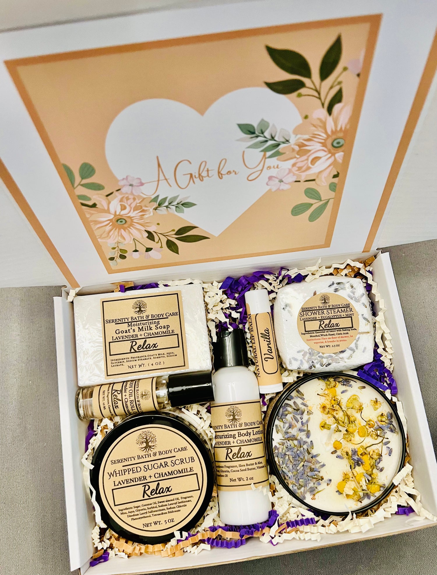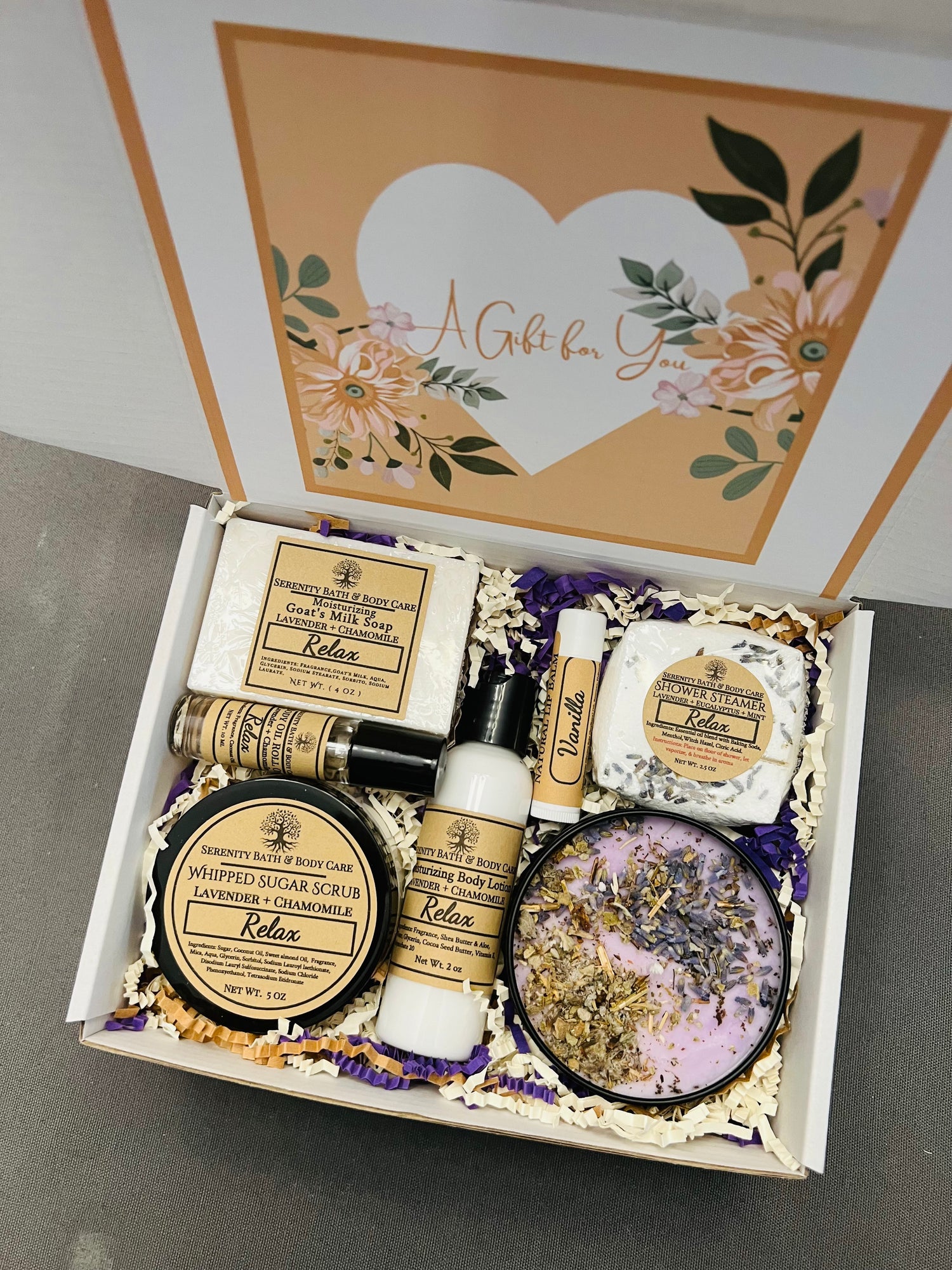 Our luxurious relaxation gift boxes feature quality bath and body care products that helps promotes stress relief, relaxation and self-care. Send a spa gift basket today to brighten up someone's day with thoughtful items. Our relax care packages will arrive nicely packed.