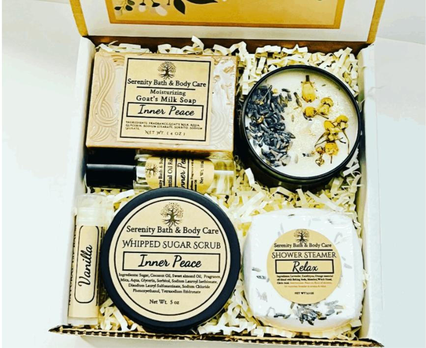 Our luxurious relaxation spa gift boxes feature quality bath and body care products that help promote stress relief, relaxation and self-care. Our products are handcrafted in small batches with natural ingredients. Send a spa gift box today to brighten up someone's day with our thoughtful products. Our relaxation care packages will arrive nicely packed. You have the option to personalize the outside of our white gift boxes. Our clear top boxes do not come with an outside box personalization option, but you can select a greeting card and add a gift message. The card will come in a white envelope attached to the clear top box with a white ribbon. All personalization, gift messages and greeting card selections need to be added to our note section at checkout.