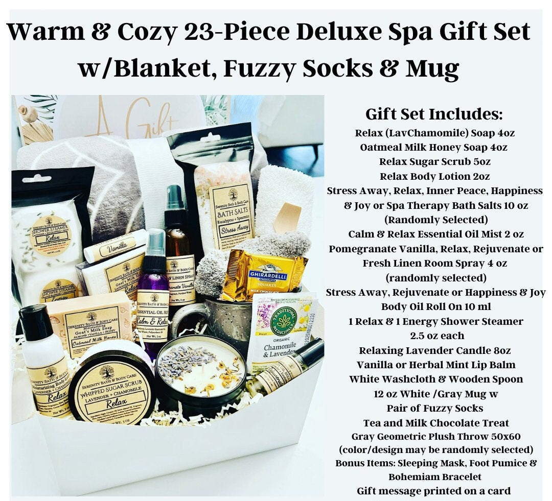 A Deluxe Warm & Cozy Plush Blanket Spa Gift Basket, Hygge Gift Box, Sympathy Gift Box, Gift for Mom, Recovery Gift, Thinking of You, Relaxation Gift