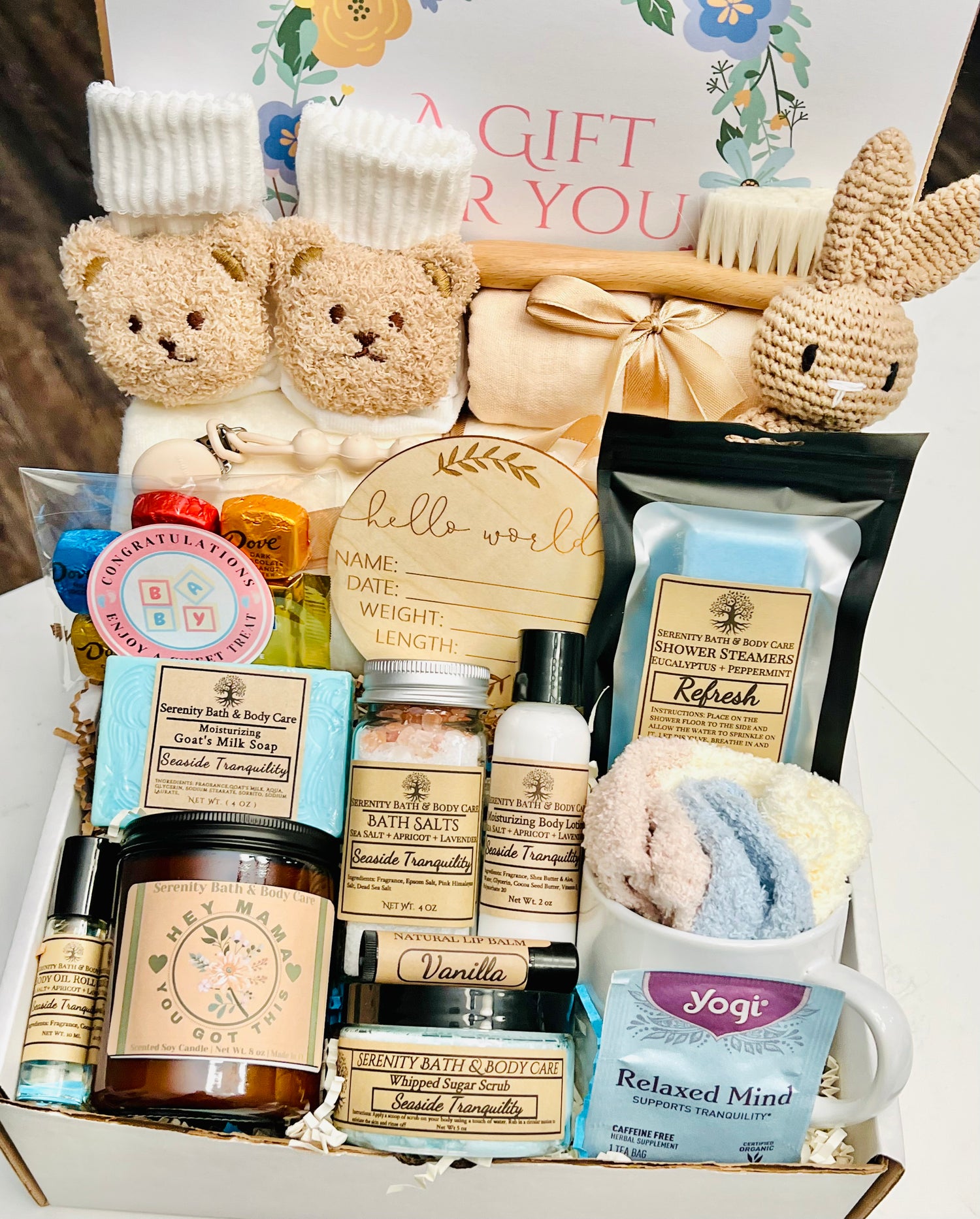 Celebrate the arrival of a new baby with our thoughtfully curated **New Mom Gift Box**. This self-care package is designed to pamper new mothers, featuring a selection of high-quality bath and body products alongside essential baby items. Each item is handpicked to ensure a delightful experience for both mom and baby, making it the perfect gift for baby showers, new moms, or as a thoughtful pregnancy gift.